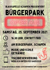 Am 25. September konnte trotz aller Corona-Einschränkungen doch wieder eine Veranstaltung stattfinden: das Bürgerpark Open Air.