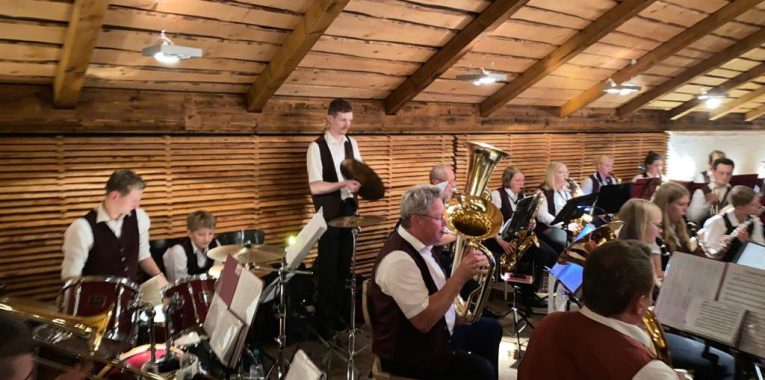 Das tat der Veranstaltung aber keinen Abbruch und so konnte unter freiem Himmel schwungvoller Musik gelauscht werden. Die Stückauswahl reichte von Medleys der Bands “Santiano” und “Die Ärzte” über die bekannte Polka “Ein Leben lang” bis hin zu Michael Jackson’s “Bad”.