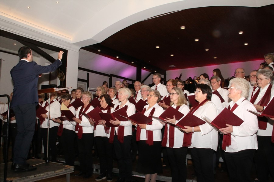 Das Highlight des Abends stellte das anspruchsvolle „Baba Yetu“ dar, dass die beiden Gruppen in einigen gemeinsamen Proben intensiv geübt hatten. Dass ein Blasorchester nicht nur aus Instrumenten, sondern auch aus einer Vielzahl an verschiedenen Schlagzeug-Arten besteht, war den Zuschauer spätestens bei diesem afrikanischen Lied bewusst. Mit gleich sechs Schlagzeugern – zwei Querflöten mussten aushelfen – bewerkstelligten sie die vielen verschiedenen Stimmen und sorgten für einen Hauch Afrika. Der Kirchenchor hatte ebenso hart an dem Stück gearbeitet, um die Sprache Suaheli gekonnt singen zu können. Zusammen glänzten die beiden Gruppen um die Wette und krönten somit ihr gelungenes Konzert.